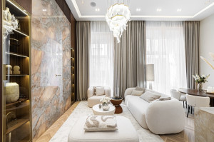 A belsőépítész által megálmodott enteriőr a kortárs stílust és az otthonos harmóniát ötvözi.