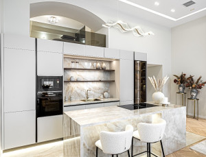 Teljesen gépesített olasz konyha konyhaszigettel és bárpulttal